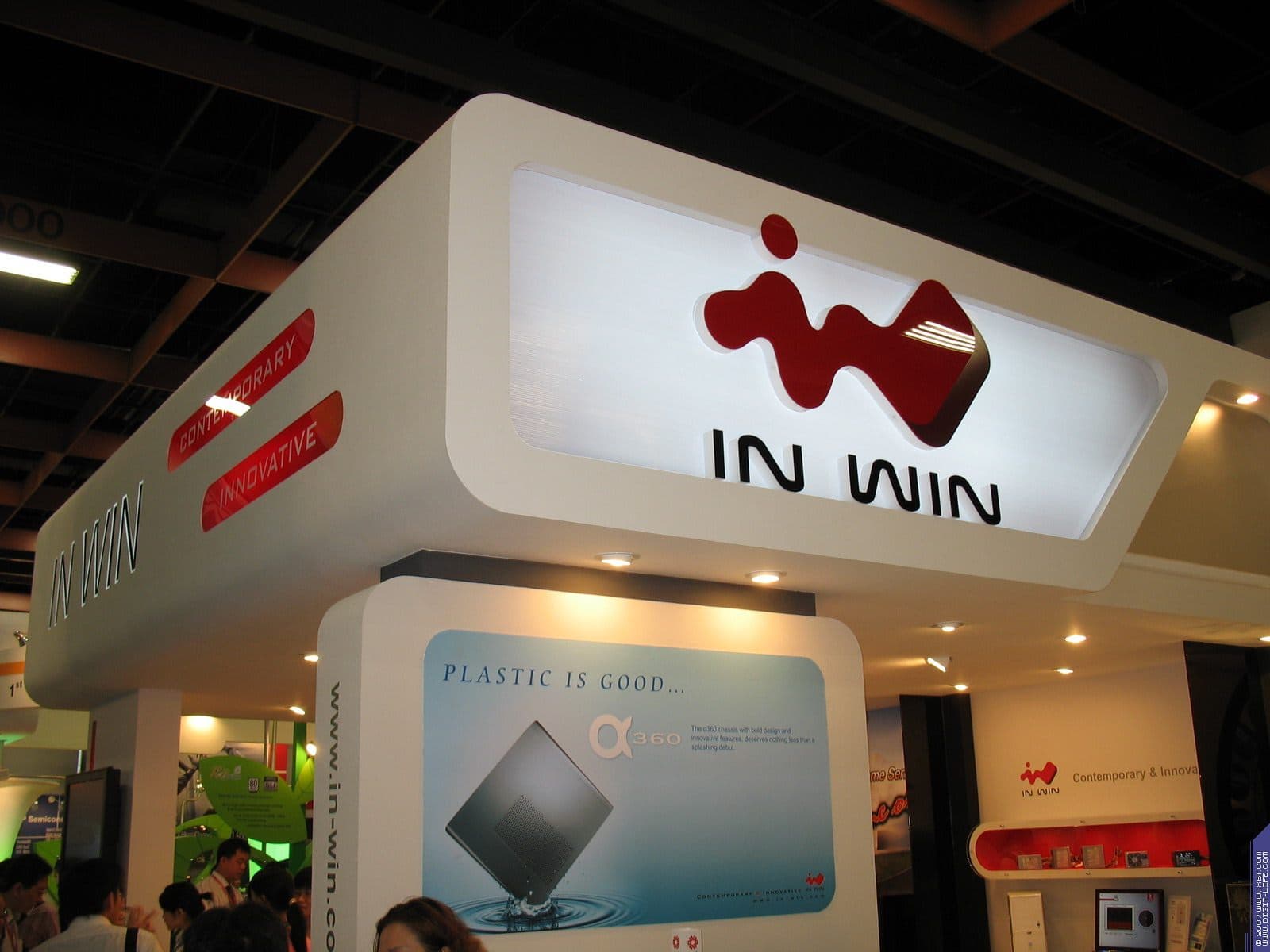 Следующий стенд, привлекший наше внимание, принадлежал компании InWin. Разумеется, этот бренд широко известен в нашей стране и очень давно. Компания также тайваньская, и производство точно также размещено в континентальном Китае. Впрочем, такое положение дел уже становится привычным и обычным для IT-бизнеса. Все больше и больше фирм переводят производство на «Большой Китай», как называют КНР в Азии. Прежде всего из-за очень малооплачиваемой рабочей силы, что позволяет в разы уменьшить себестоимость выпуска продуктов.