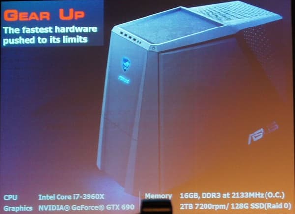 В финале презентации были представлены два полноценных устройства: новый ноутбук G75 и настольный компьютер ROG Tytan CG8890.