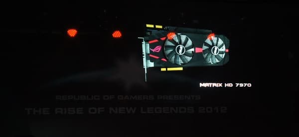 Представление продуктов проходило в очень сильно затемненном зале с символикой Republic of Gamers.