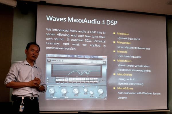 Мне вообще всегда нравится слушать выступления руководителя этого направления. Во-первых, человек, что называется, глубоко в теме — он очень хорошо разбирается в технических деталях, владеет информацией о том, как и что тестируется и внедряется, в чем сложности и недостатки того или иного решения, а главное — имеет дар живо и интересно рассказать о возникающих проблемах и о том, как их решают — даже на чужом языке. Его всегда очень интересно слушать, потому что начинаешь понимать — как рождается акустика нового ноутбука, какие проблемы приходится решать, и почему она получается именно такой.
