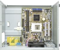 Каких? Системную плату на максимально дешевом, полностью интегрированном чипсете, с полным использованием всех его возможностей, включая встроенный сетевой контроллер. При этом не такую большую, как MicroATX, и не столь экстравагантную, как FlexATX. Предельно маленький корпус с блоком питания, спроектированный как раз под эту системную плату, с максимально компактным расположением компонентов. Ну и СD-ROM привод да дисковод для комплекта.