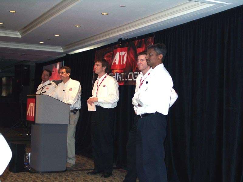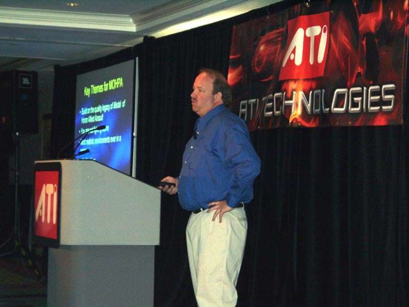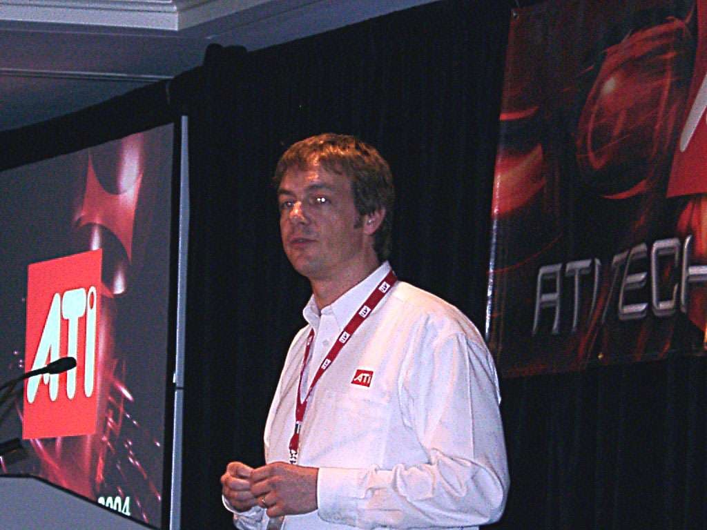 | Первым взял слово Крис Эвенден (Chris Evenden) — руководитель маркетингового сектора ATI, он собственно, и вел все мероприятие. | ![]() (Фотография в разрешении 800×600) |