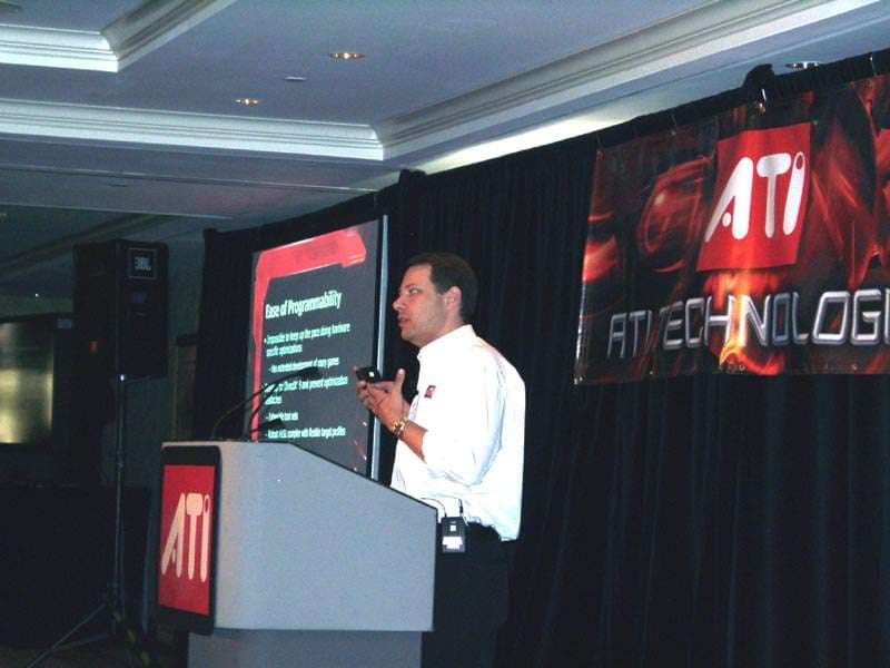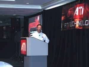 | Затем с докладом выступил старший вице-президент ATI по маркетингу (desktop) Рик Бергман (Rick Bergman) | ![]() (Фотография в разрешении 800×600) |