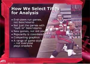 Далее была показана классификация игр по годности к бенчмарку, а также затронуты темы узких мест в играх и их упорядочивание. Это упирание в частоту центрального процессора, геометрический движок, блок шейдеров и т. д. На слайдах ниже приведены примеры каждого такого случая с перечислением даже названий игр, которые можно отнести к той или иной категории bottleneck.