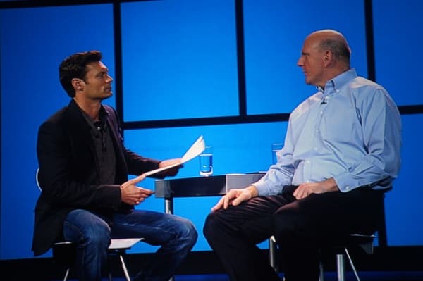 Выступление Стива Баллмера было построено в форме диалога, и помогал ему в этом известный ведущий американского телевидения Райан Сикрест (Rayan Seacrest). Они вели спокойную и неторопливую беседу (что, в общем, нехарактерно для Стива Баллмера, обычно он очень экспрессивен). Телесуфлер находился практически за нашими местами, так что можно было проконсультироваться, если чего-то не услышал со сцены.