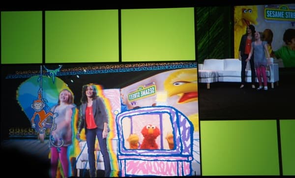 Однако это только первая часть новых возможностей Xbox 360. Второе направление развития — переход с одностороннего (просто просмотр видео) на двустороннее взаимодействие (т. е. интерактивное ТВ). Для демонстрации на сцену пригласили маленькую девочку с мамой.