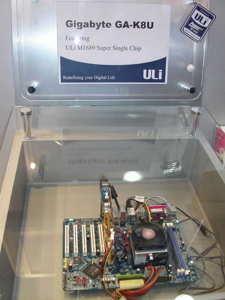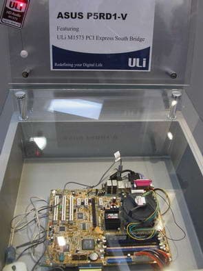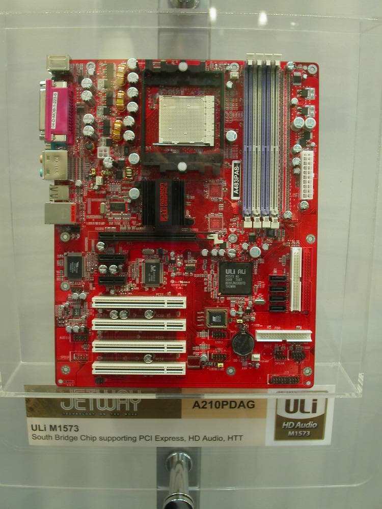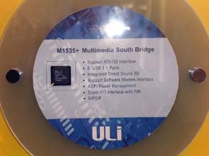 Стенд Uli был построен таким образом, что на нем размещались, преимущественно, уже созданные решения, предлагаемые различными вендорами. Так системная плата JETWAY поддерживающая PCI-Express, построена с использованием северного моста ATI (RADEON XPRESS 200), а южного — ULi M1573.