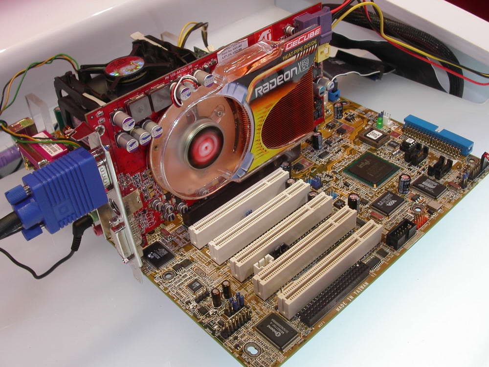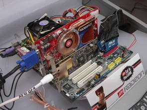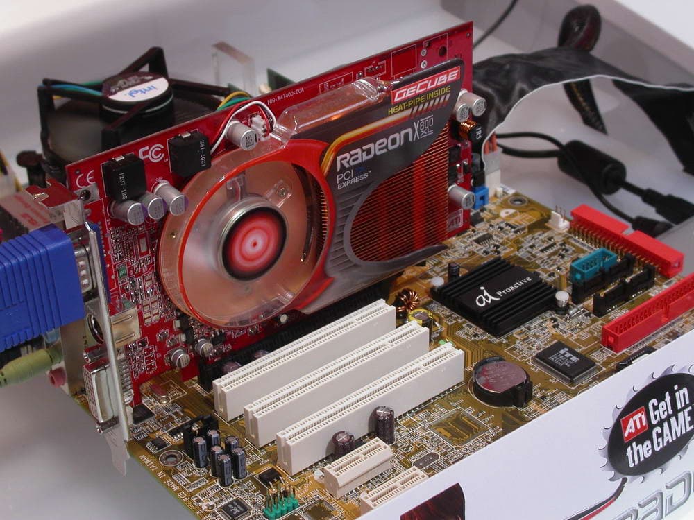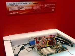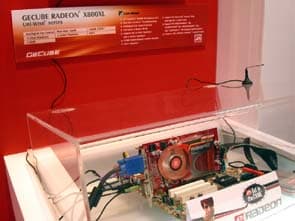На стенде GeCube демонстрировались топовые новинки сезона. X850XT для разъёма AGP.