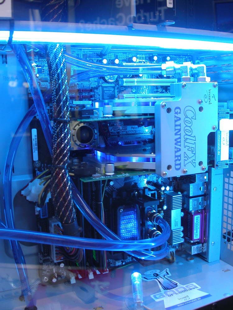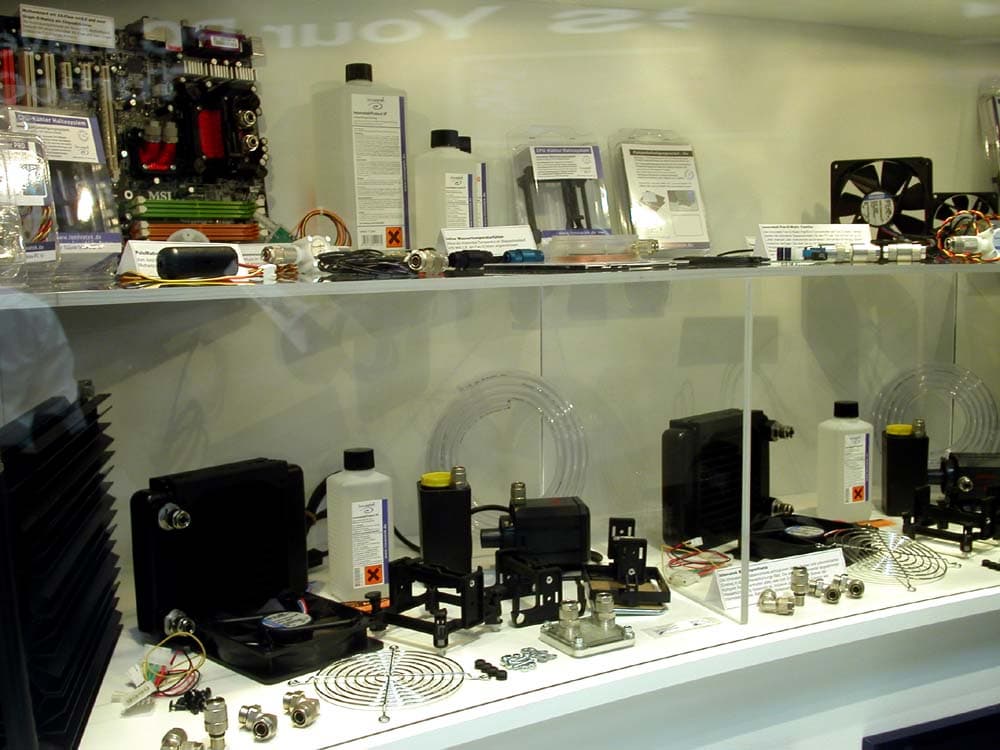 Озадачившись вопросом охлаждения, Gainward демонстрировали на своем стенде устройства для водяного охлаждения центрального процессора и GPU видеокарт.