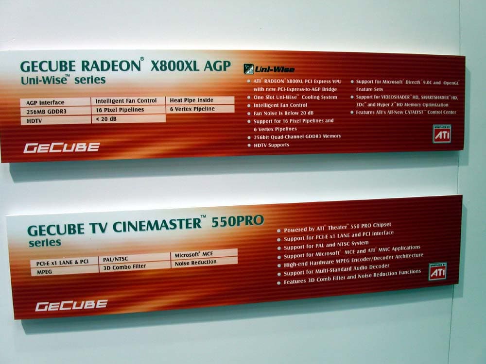 Как и другие партнеры ATI GeCube продемонстрировали TV-Tuner серии Cinemaster 550PRO. На этот раз мултимедиа-контроллер работал в паре с X800XL с интерфейсом AGP.