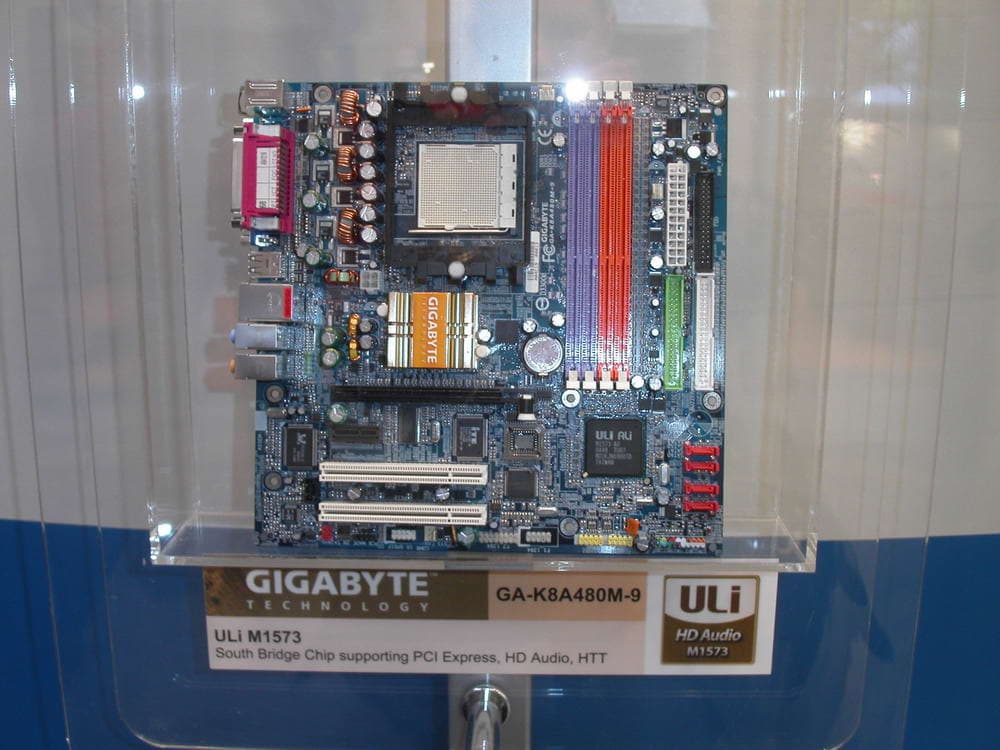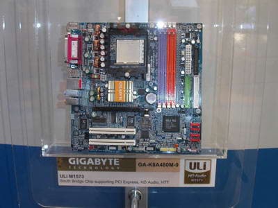 Аналогичное решение было представлено также и от Gigabyte — модель материнской платы GA-K8A480M-9, форм-фактора micro-ATX для процессоров Socket 939 AMD Sempron, AMD Athlon 64, AMD Athlon 64 FX.