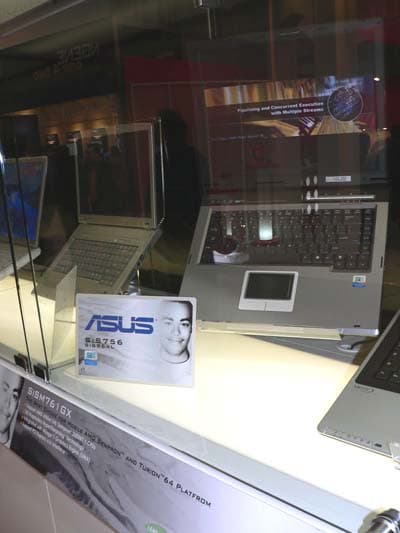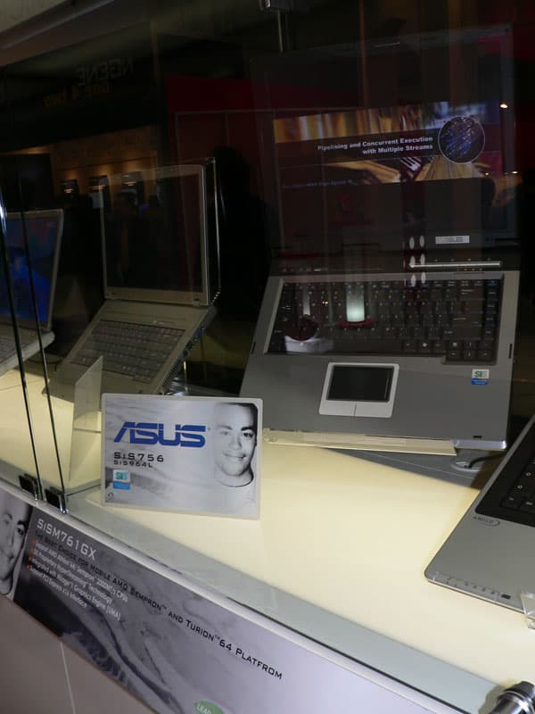 Впрочем, на стенде SiS нами был замечен подозрительно компактный ноутбук ASUS на дискретном чипсете SiS756 (поддержка PCI-Express 16x и 1 ГГц частота для Hyper-Transport), также представленном в ходе выставки, но как чипсет для серверов и рабочих станций.