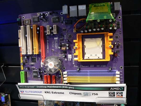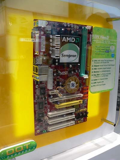 И обратим внимание на новые чипсеты под AMD-процессоры, представленные в рамках выставки. В первую очередь, достоин упоминания чипсет nForce4-4x, добавляющий поддержку PCI-Express на платы с бюджетным Socket 754. К примеру, плата MSI K8N Neo3 уже доступна в московской рознице!