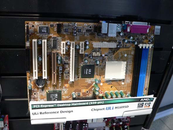 Наконец, чиповой набор от ULi во главе с микросхемой ULi1695D славен тем, что позволяет собирать платы с поддержкой как PCI-Express 16x, так и AGP 8x, можно на одной плате разом: