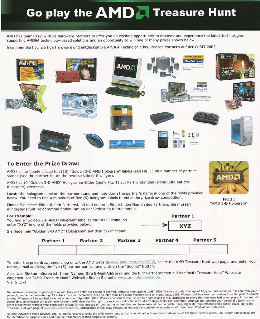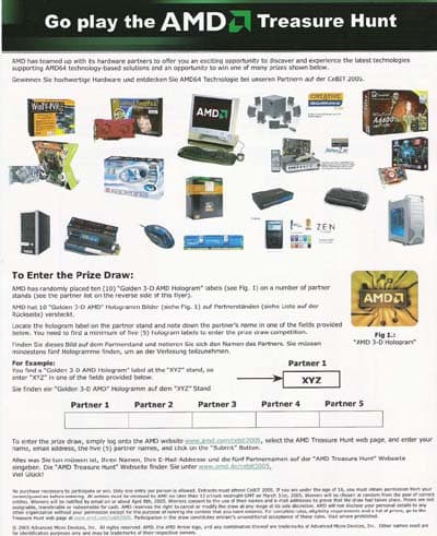 Однако, расстановкой кубиков, маркетинговая активность не ограничилась, для наиболее прилежных посетителей, готовых изучить стенды всех партнеров и разыскать на них потайную голограмму, AMD приготовила розыгрыш призов: