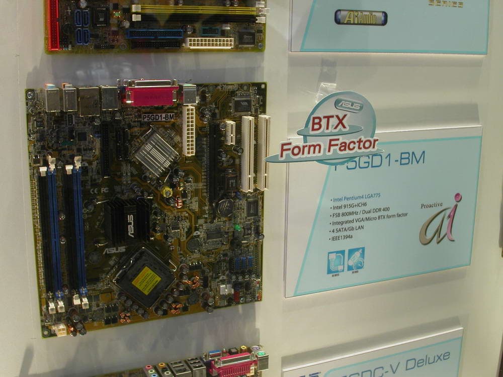 А также SIS 649+965 под LGA775 с PCI-Express и BTX-решение на Intel 916G.
