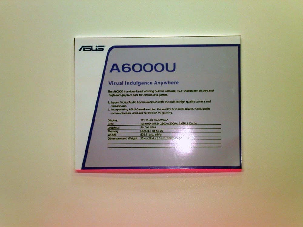 Помимо современных процессорных технологий, модель A6000K оснащена также мощным графическим ядром NVIDIA GeForce Go6200.