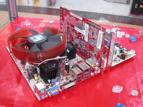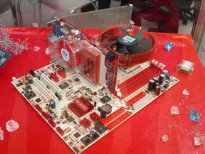 Разумеется, наиболее интересным экземпляром на стенде Sapphire стала материнская плата на базе чипсета ATI Xpress 200.