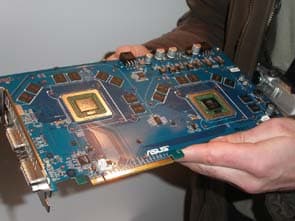 Начать рассказ о новинках ASUS, хотелось бы, конечно, с уникальной в своем роде новинки: двухпроцессорной видеокарты-гиганта на двух GeForce 6800 Ultra. Размеры этого монстра действительно поражают.