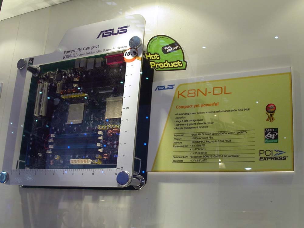В сегменте серверных материнских плат среднего уровня ASUS представлял двухпроцессорное решение на чипсете NVIDIA nForce 4 Professional