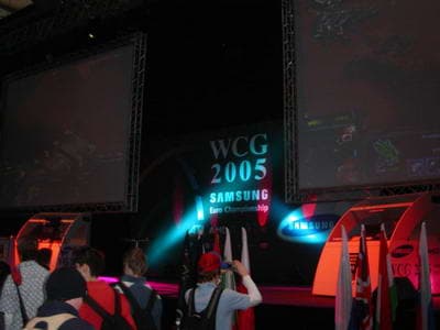 Как потом выяснилось — всё это не просто так. Ведь в том же павильоне, под эгидой ATI, Samsung и AMD проводился Международный Игровой Чемпионат (World Cyber Games), в котором участвовали и за которым наблюдали сотни человек.