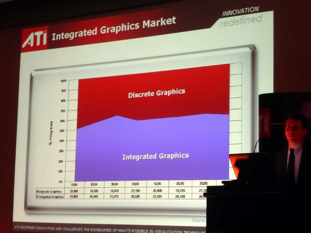 В то же время, немаловажным рынком для ATI остаётся и рынок интегрированной графики, который все ещё больше рынка дискретных решений.