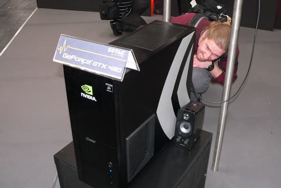А это стенд Zotac, и карту, которая предположительно скрывается в недрах копуса вряд ли стоит дополнительно представлять. Еще немного и... А что собственно? Сэмплы попадут к обозревателям, и все узнают, что собою представляют карты на графическом процессоре GF100 и какова их производительность в действительности. Ну а пока еще можно немного поинтриговать и подогреть интерес. Впрочем, сама демонстрация, к сожалению, была не очень содержательной: на мониторе отображалась одна из фирменных демок от NVIDIA, и специально приставленный сотрудник стенда перемещал в ней игрового персонажа. Какой-нибудь общепризнанный тест, конечно, дал бы больше информации для размышления. Поэтому коллеги в поисках содержательной части самоотверженно лазили вокруг этого компьютера, нацеливались камерами через вентиляционные отверстия и т.п. Однако почему-то именно попытка сфотографировать видеокарту со стороны разъемов вызывала запретительную реакцию упомянутого сотрудника. Внятного ответа: в чем именно секрет, мы не получили, поэтому пришлось «прицелиться» с соседнего стенда.