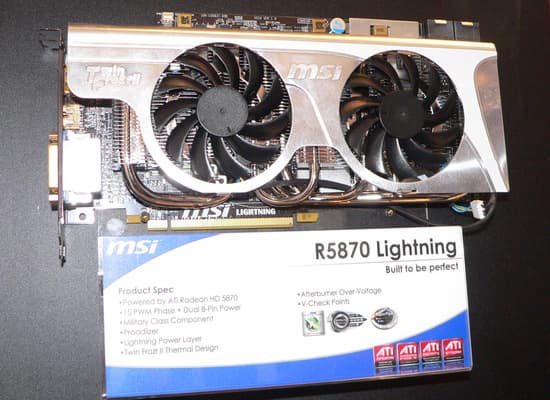 А это пополнение известной элитной серии Lightning от MSI картой на графическом процессоре Radeon HD5870. Особенностью серии помимо оригинального кулера Frozr II является использование элитных компонентов в схеме питания, тут по аналогии с системными платами внедряются Hi-с-конденсаторы, катушки с ферритовыми сердечниками и прочие атрибуты схем с высокой эффективностью. Кстати, по числу каналов эта карта превосходит многие системные платы: используется 15-канальный стабилизатор напряжения. Причем, с динамически регулируемым количеством задействованных каналов, так что в простое и при частичной нагрузке, карта обещает оставаться экономичной, а в разгоне должна показать убедительный результат.