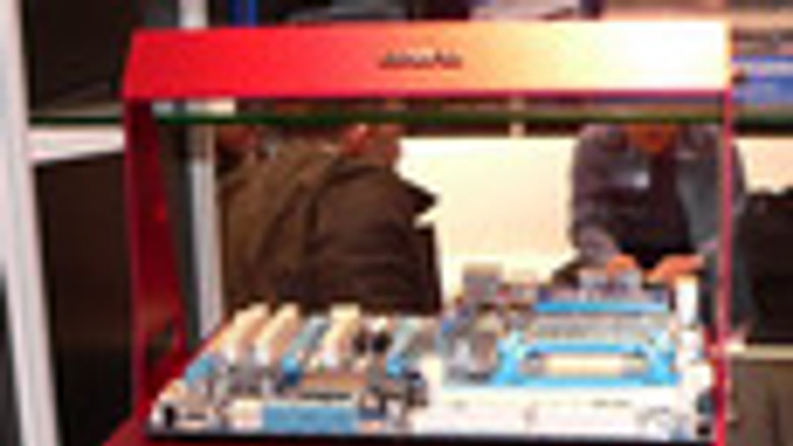 На обратном пути, на флэшке оставалось место еще для нескольких кадров. Почему бы в таком случае не зайти на стенд компании Chenbro? Тем более, что на ее стендах обычно находится место оригинальным изделиям, хотя бы в плане расцветки. Но на этот раз в фокусе внимания оказались устрашающих размеров корпуса для многопроцессорных рабочих станций, а из потребительского сегмента любопытными можно назвать разве что такие 3-литровые Mini-ITX-модели.