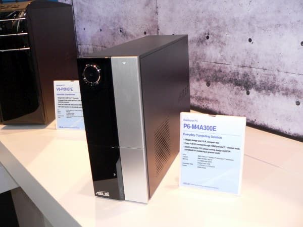Линейка корпусов ASUS отныне существует под самостоятельным брендом Vento и на выставке представлена не было, а из готовых систем (вернее Barebone) кое-что любопытное присутствовало. Например, вот такая компактная система (объем 10 л) с платой на чипсете AMD 780L подойдет не только для повседневных вычислений, но и в зависимости от установленного процессора, роль которого может играть любой из линейки Athlon II и Phenom II, может послужить и для воспроизведения Full HD.