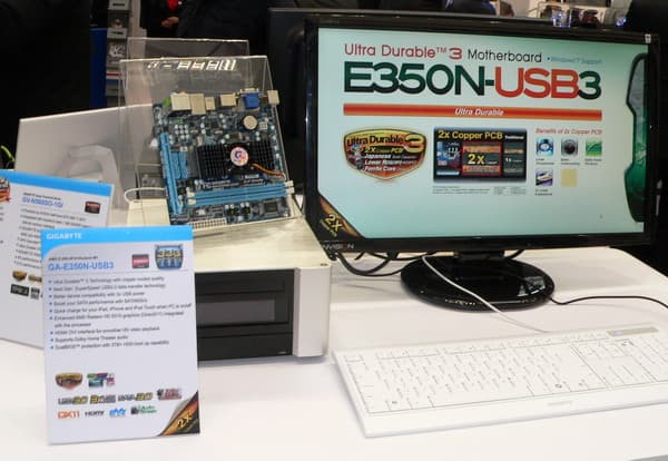 И, наконец, посетители могли в действии оценить miniITX-плату на процессоре AMD E-350, для которой разработчики не пожалели полный комплект своих фирменных технологий в части электропитания. Надо отметить, что сами платы, упомянутые выше, уже едут в нашу лабораторию, так что в ближайшее время, мы расскажем все в подробностях.