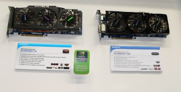 Несправедливо было бы обойти вниманием и стенд Gigabyte, который был непропорционально маленьким и спрятанным в закрытой зоне для реселлеров. Это не очень здорово, если учесть, что потенциально этой компании ничего не мешало размахнуться на уровне ASUS, ведь о различных «побочных» продуктах (корпусах, кулерах, блоках питания и прочей периферии) от Gigabyte мы слышали еще много лет назад. Но жаль лишь, что только слышали, в реальности политика по продвижению всего, что выходит «за пределы» системного блока, в Gigabyte всегда была крайне странной. Вроде как и производим, но продвигать и продавать некому. Поэтому на этот раз посетители имели возможность посмотреть только на несколько видеокарт с оригинальными кулерами.