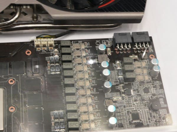 А число каналов преобразователя питания можете посчитать самостоятельно. Впрочем, карта получилась из-за этого выше стандартной и требует наличия двух 8-контактных разъемов.