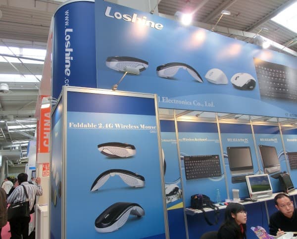 Продолжая тему оригинальных манипуляторов, не могу не вспомнить стенд малоизвестной компании, обнаружившийся в «китайском павильоне». Как видите, это беспроводная мышь, которая в походном положении может использоваться как миниатюрный манипулятор. А когда вам хочется комфорта, дома ее можно и «разложить». К сожалению, подержать в руках это устройство так и не удалось. Сотрудники стенда долго искали рекламируемую новинку, но в итоге констатировали, что по ходу выставки она куда-то затерялась. А вы еще спрашиваете, почему на рынке все одни и те же имена, а новичкам, мол, совсем дорогу не дают.