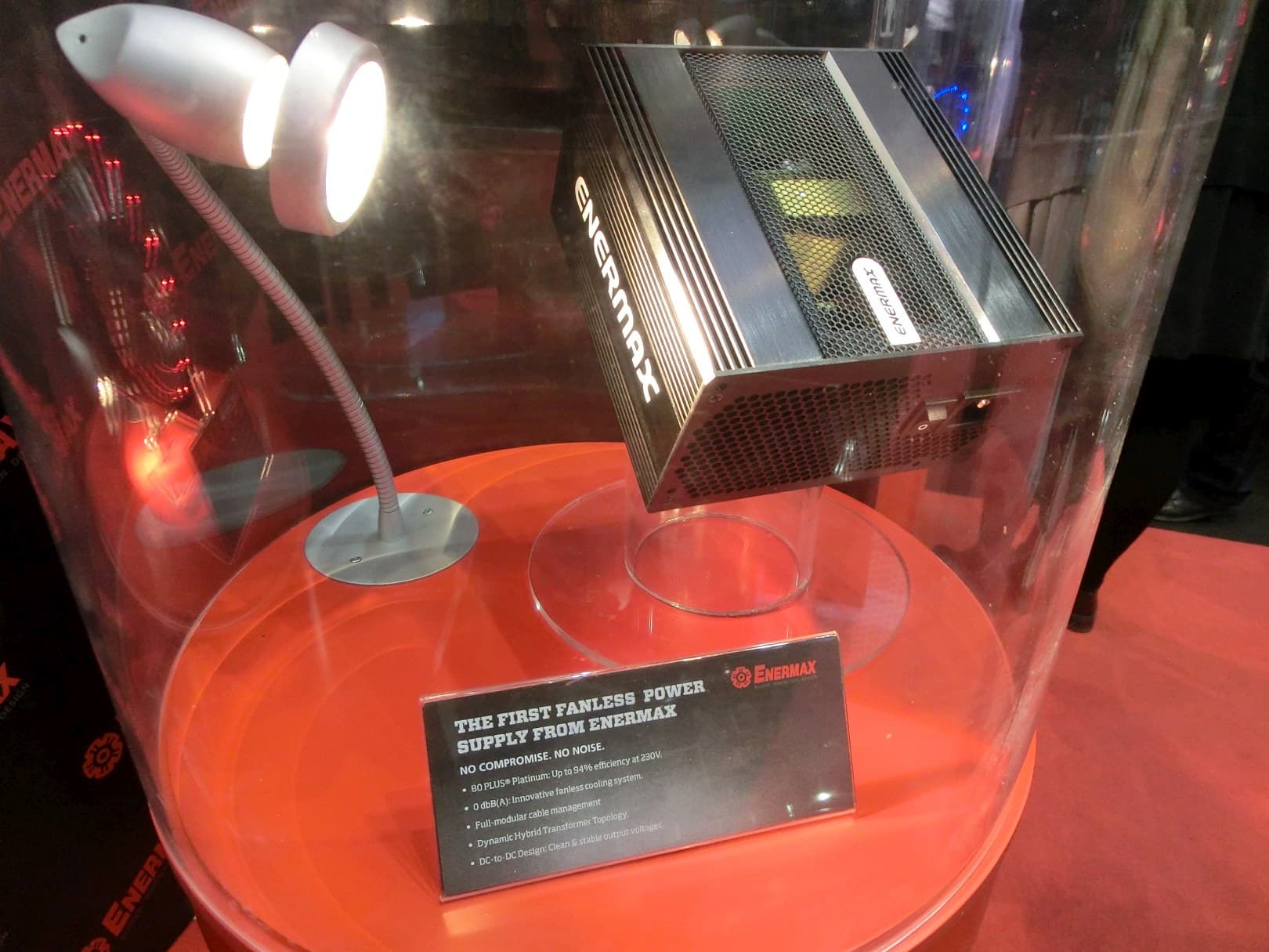 Смотреть на блоки питания, пожалуй, еще более специфическое занятие, чем на корпуса, потому что здесь придумать что-то новое совсем сложно. Прошлые годы, как мы помним, шла борьба за сертификаты эффективности, так что все наперебой зазывали посмотреть на их «серебряные», «золотые», а местами и «платиновые» модели. Ну а нынешний CeBIT отметился несколькими очень востребованными безвентиляторными моделями. Во-первых, на стенде Chieftec была отмечена 500-ваттная модель с пассивным охлаждением. Первая поставка уже добралась до России и, по слухам, почти полностью распродана.