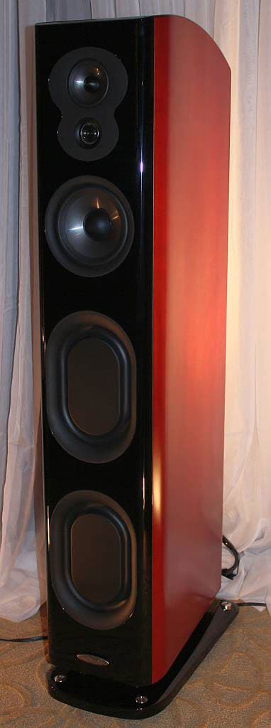 Но самое большое впечатление, по крайней мере размерами, произвела акустика компании Perfect8. 2 метра высотой, вес, в зависимости от конфигурации, от 300 до 600 кг, долговременная максимальная мощность — 600 Вт, импульсная — до 2 кВт, рекомендуемая площадь помещения — от 20 м² до 200 м².