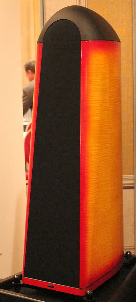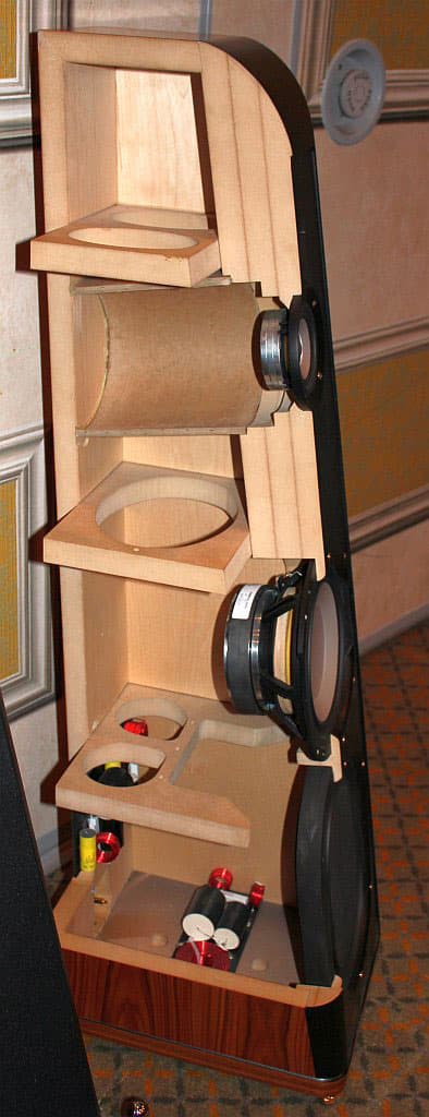 Послушать её не представлялось возможным, но зато как смотрится… Подозревал и раньше, а теперь, ещё и прослушав некоторое количество колонок на этой выставке, убедился, что дизайнерские находки в акустике не слишком часто соответствуют качеству звука, который обещается внешним видом, но в данном случае то, что показано в разрезе, внушает определённое уважение.
