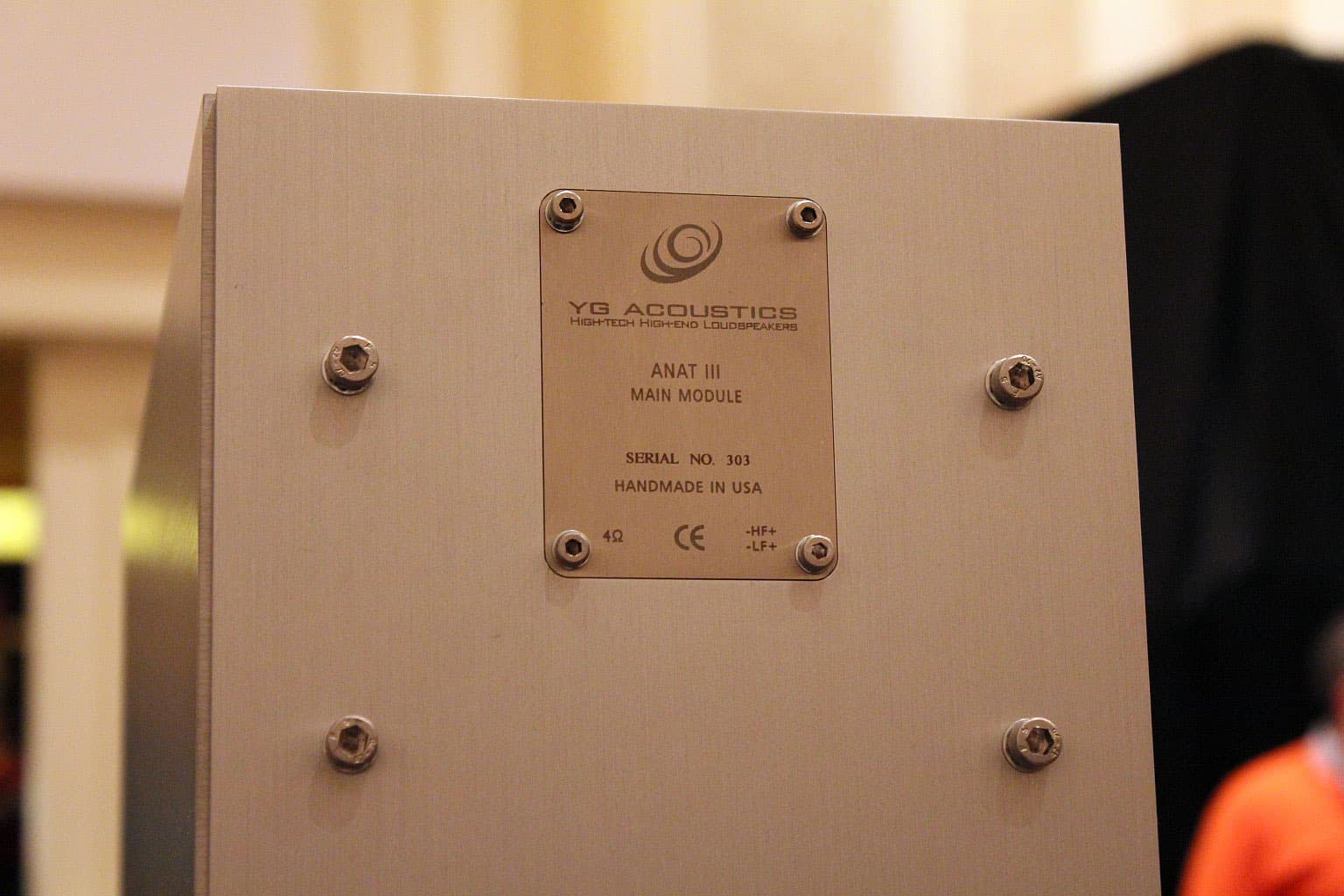 Запомнились своим внешним видом колонки YG Acoustics. В том числе тем, что они сделаны из цельного куска мрамора алюминия. Целиком: корпуса, винты, конусы динамиков.