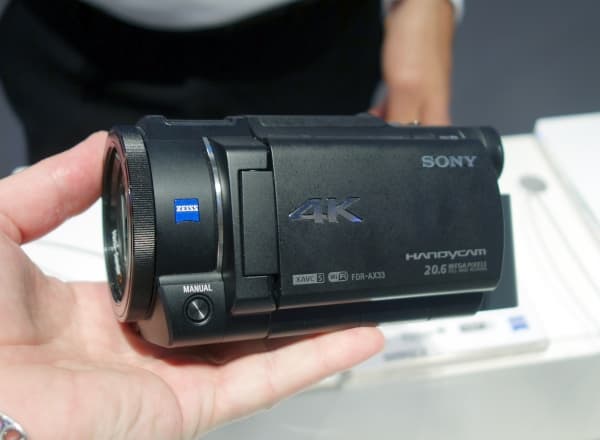 Модель FDR-AXP33 из обновленной серии Handycam не менее интересна. Камера также способна снимать 4К-видео (3840×2160, 30 fps) с битрейтом до 100 Мбит/с, для съемки используется формат XAVC S. Новинка стала первой камерой, оснащенной системой оптической стабилизации Balanced Optical SteadyShot (B.O.SS). Новая модель стала легче и меньше в габаритах, чем предшественница FDR-AX100, а стоить она будет даже дешевле — представители Sony пошутили по этому поводу, что покупатель получает 4К за 1К, имея в виду цену новинки, установленную в районе 1 тысячи долларов.