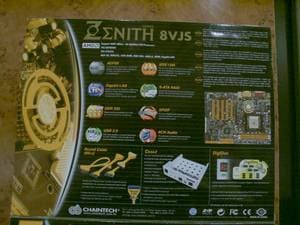 Zenith 8VJS: чипсет VIA K8T400M (AGP 8x), SATA RAID, Gigabit Ethernet, FireWire, 6-канальный аудиоконтроллер (C-Media) с поддержкой S/PDIF.