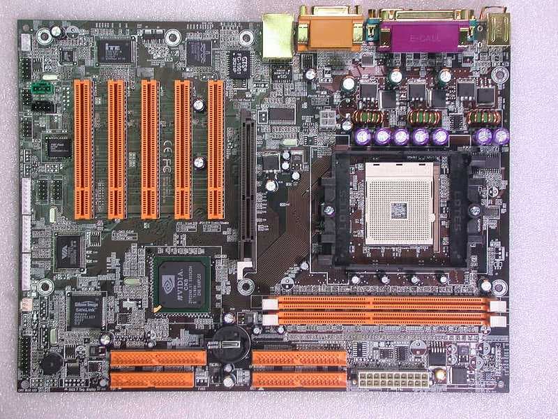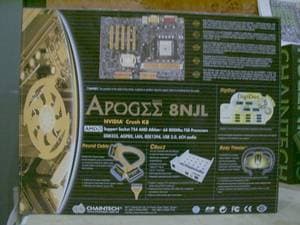 Apogee 8NJL: чипсет NVIDIA Crush K8 (AGP 8x), Fast (Gigabit?) Ethernet, FireWire, 6-канальный аудиоконтроллер (C-Media).