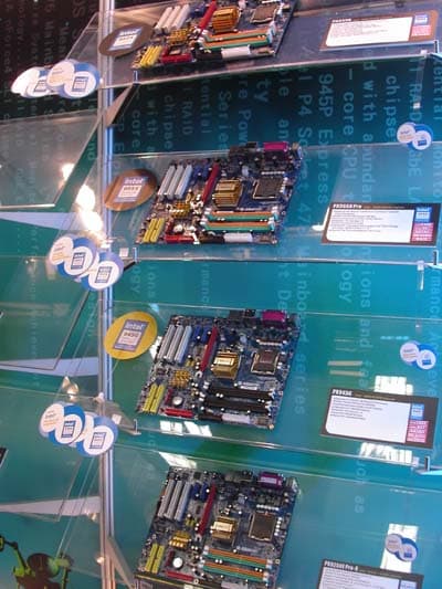 Как мы уже отмечали, вообще выставка проходла под девизом: «Каждой твари по паре». Двухъядерные процессоры, видеокарты на основе двух процессоров, много решений для SLI, анонсированная технология CrossFire, двойной интерфейс PCI-E и AGP…