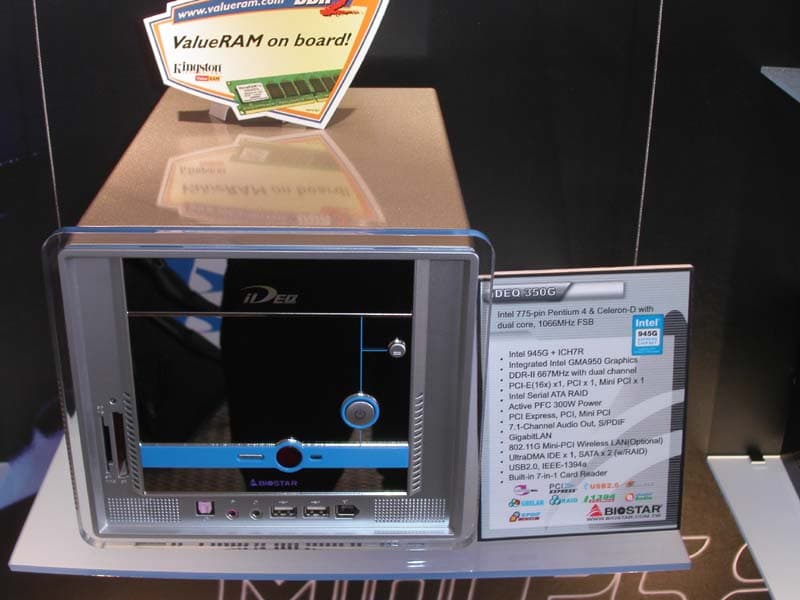 Успех Shuttle На рынке Barebone-систем заставляет и других производителей обращать более пристальное внимание на этот рынок. «Кубик» Biostar на чипсете под кодовым названием Crush 51, в который интегрирована графика уровня 6200ТС, появится не раньше начала поставок чипсета, через месяц-другой, при этом цена на систему заявлена в районе 530 долл.