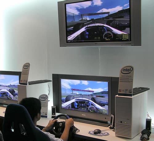 А чтобы посетители выставки могли на собственном опыте почувствовать прыть новой игровой платформы Intel, были предусмотрены соответствующие игровые площадки.
