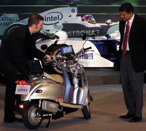 Оснащенный WiMAX скутер Intel любит показывать в подтверждение универсальности и удобства этой грядущей технологии беспроводной связи.
