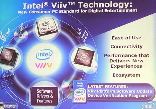 Под знаком Viiv у Intel проходила демонстрация и множества сопутствующих коммуникационных и медиа-компонентов (включая Digital Media Adapters, TV, DVD и PMP):
