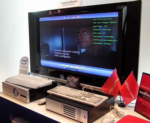 А сопутствуют этому «торжеству мультимедиа технологий будущего» плеер HD DVD от Toshiba с HDMI-выходом, основанный, разумеется ;), на чипсете Intel 854,