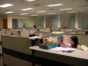 Некоторые сотрудники стараются разнообразить свои «кубики», в результате на перегородках появляются забавные зверьки ручной работы из бусинок.