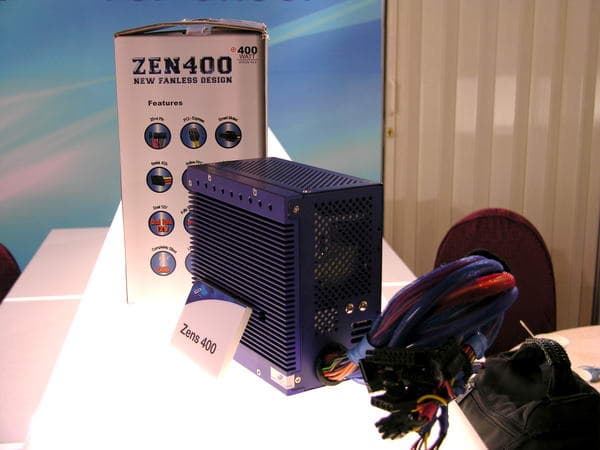 В ходе выставки Computex FSP представили полный модельный ряд своей продукции. В предыдущей части нашего обзора мы отмечали, что ряд производителей, как, например, Microstar, уделают значительное внимание вопросу построения бесшумных систем. Но часто в таких системах наиболее шумящей составляющей является не вентилятор на видеокарте или процессоре, а система воздушного охлаждения в блоке питания. Выпустить сравнительно мощный и качественный бесшумный БП — задача не столь тривиальная, как может показаться. Для современных задач в тихой высокопроизводительной системе FSP предлагают использовать новый БП ZEN 400, который снабжён всеми необходимыми разъёмами. Учитывая, что бесшумные системы строятся как правило на решениях среднего и начального уровней, 400 Вт должно хватить для вполне производительной системы с уровнем шума близкой к нулю.