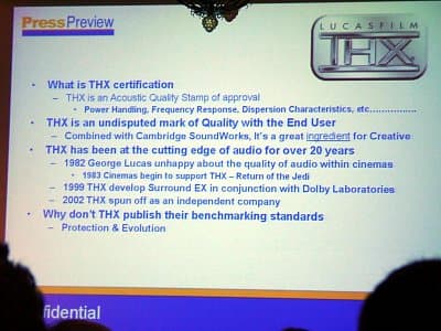 Раз уж речь зашла о THX, разумно будет кратко остановиться на самой сертификации, и объяснить, почему она так важна. Согласно Сreative, это своего рода «Печать ОТК», гарантирующая высокое качество сертифицированной техники, которое оценивается по многим параметрам.